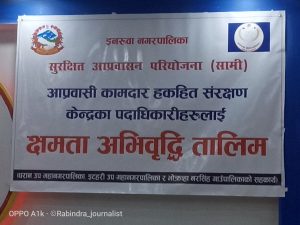 आईतवार इनरुवा नगरपालिकाको सभाहलमा सुरक्षित आप्रवासन परियोजना ९सामी०ले आप्रवासी कामदार हकहित संरक्षण केन्द्रका पदाधिकारीहरुलाई क्षमता अभिवृद्धि तालिम सम्पन्न गरेको हो । कार्यक्रममा जिल्ला स्तरका ३० जनाको सहभागिता रहेको थियो ।