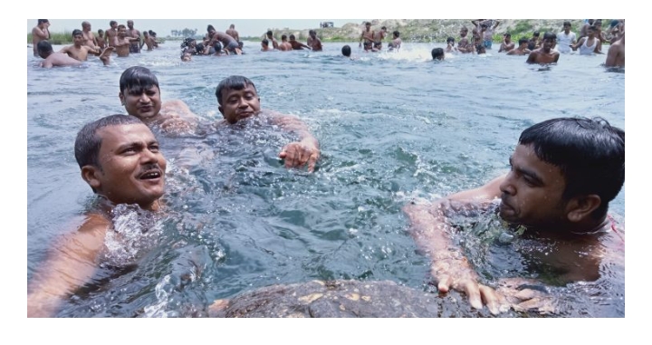 भोक्राहा नरसिंह गाउँपालिका २ का सुरेन्द्र मेहता गर्मी बढेकाले सनिबार मात्रै कोशी कटानमा दुई घण्टा स्नान गर्नुभयो । उनले गर्मीमा प्रायः पसिना आउने भएले छालालाई चिसो पार्नका लागि नुहाउन आएको बताए ।