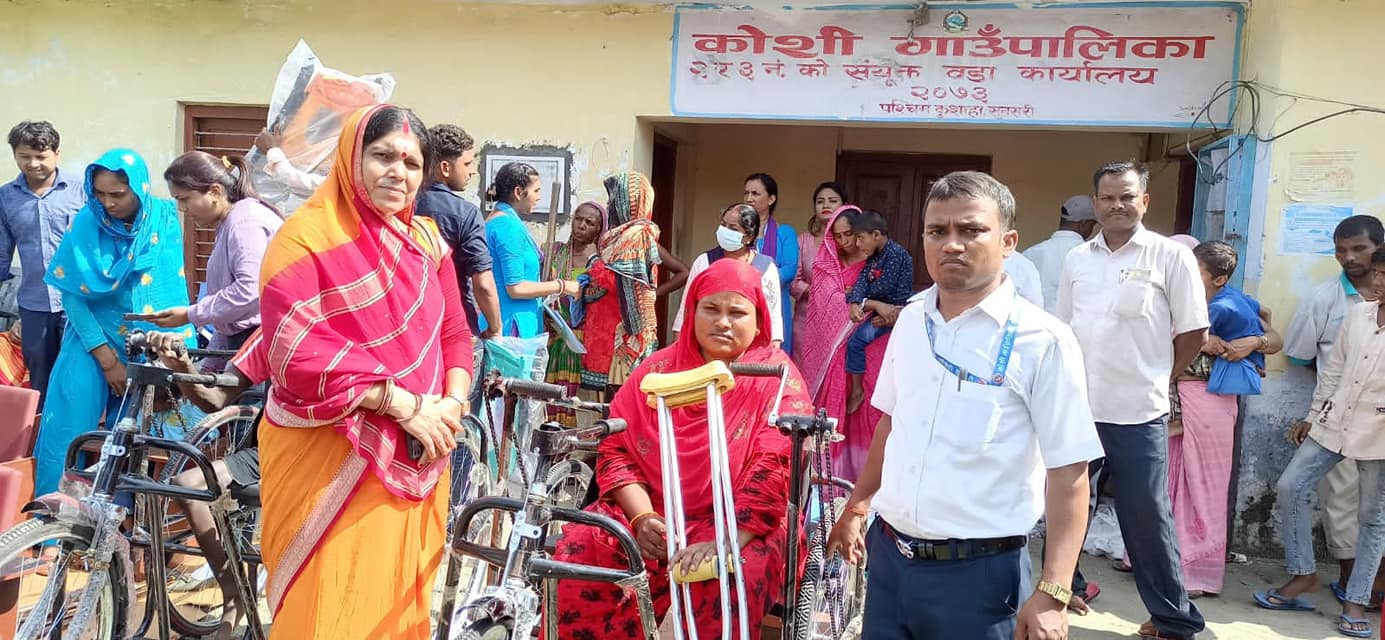 सुनसरीको कोशी गाउँपालिकामा अपांगता भएका व्यक्तिहरुलाई सहायक सामग्री वितरण