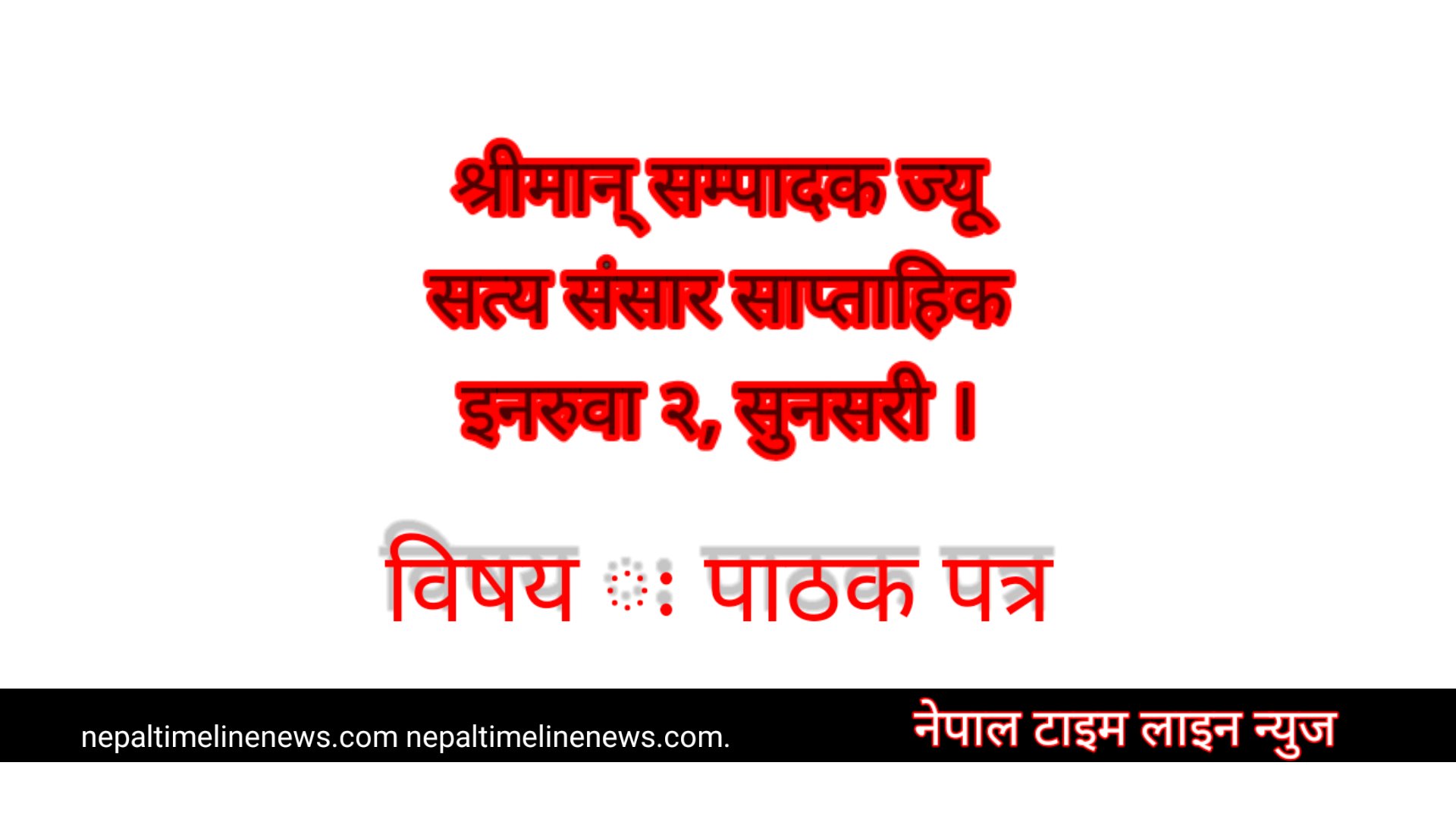प्रस्तुत विषयमा म यस पत्रिकाको नियमित पाठक हुँ । तर विडम्बना यो पत्रिका प्रकाशन भईहरेको क्षेत्र र नगरबाटै सही सूचनाहरु र खोजहरु नआएकाले त्यसमा खोज अनुसंधानका लागि अनुरोध गर्दै यो पत्र लेखेको छु । हामी नेपाली समाजमा विभिन्न विचारमा आस्था राख्ने गछौं तर जहाँ आस्था राख्ने त्यही ठाउँमा धोका दिने, कालोबजारी गर्ने, अन्तरघात गर्ने गरेको छ । त्यस बारेमा यहाँको पत्रिकामा सूचना र समाचार नआएकाले आफ्नै क्याम्पस र नगरका बारेमा जानकारी सहित पत्र पठाएको छु ।