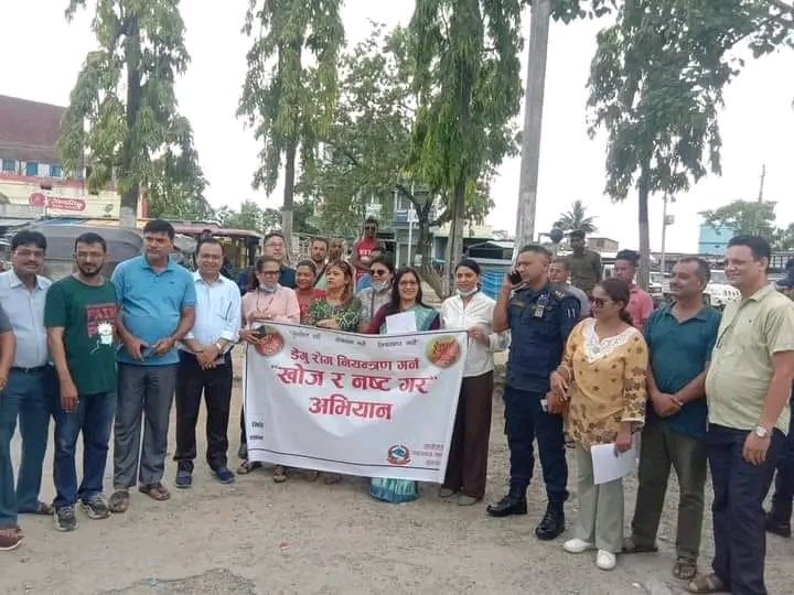 ईनरुवा । इनरुवा नगरपालिकाकाे विभिन्न वडामा डेङ्गु रोगको प्रकोप र संक्रमण बढेको भन्दै डेङ्गु रोग नियन्त्रण गर्न खोज र नष्ट गर, अभियान सुरु गरेको छ। नागरिकहरूलाइ लामखुट्टेको टोकाइबाट लाग्ने डेङ्गु रोग नियन्त्रण गर्न लामखुट्टेको बासस्थान खोज्न र नष्ट गर्न अभियान नै सुरु गरेको हो। बुधबार सुनसरीको प्रमुख जिल्ला अधिकारी हुमकला पाण्डेको संयोजकत्वमा डेङ्गु रोग नियन्त्रण गर्न खोज र नष्ट गर, अभियान सुरुवात गरेको जनाएको छ। प्रमुख जिल्ला अधिकारी पाण्डेको संयोजकत्वमा र स्वास्थ्य कार्यालय सुनसरीको आयोजनामा इनरुवा बस चौकदेखि अभियानको शुभ आरम्भ भएको अभियानमा सहभागी उधोग बाणिज्य संघ इनरुवा अध्यक्ष बीरेन्द्र कुमार साहले जानकारी दिनु भयो।।