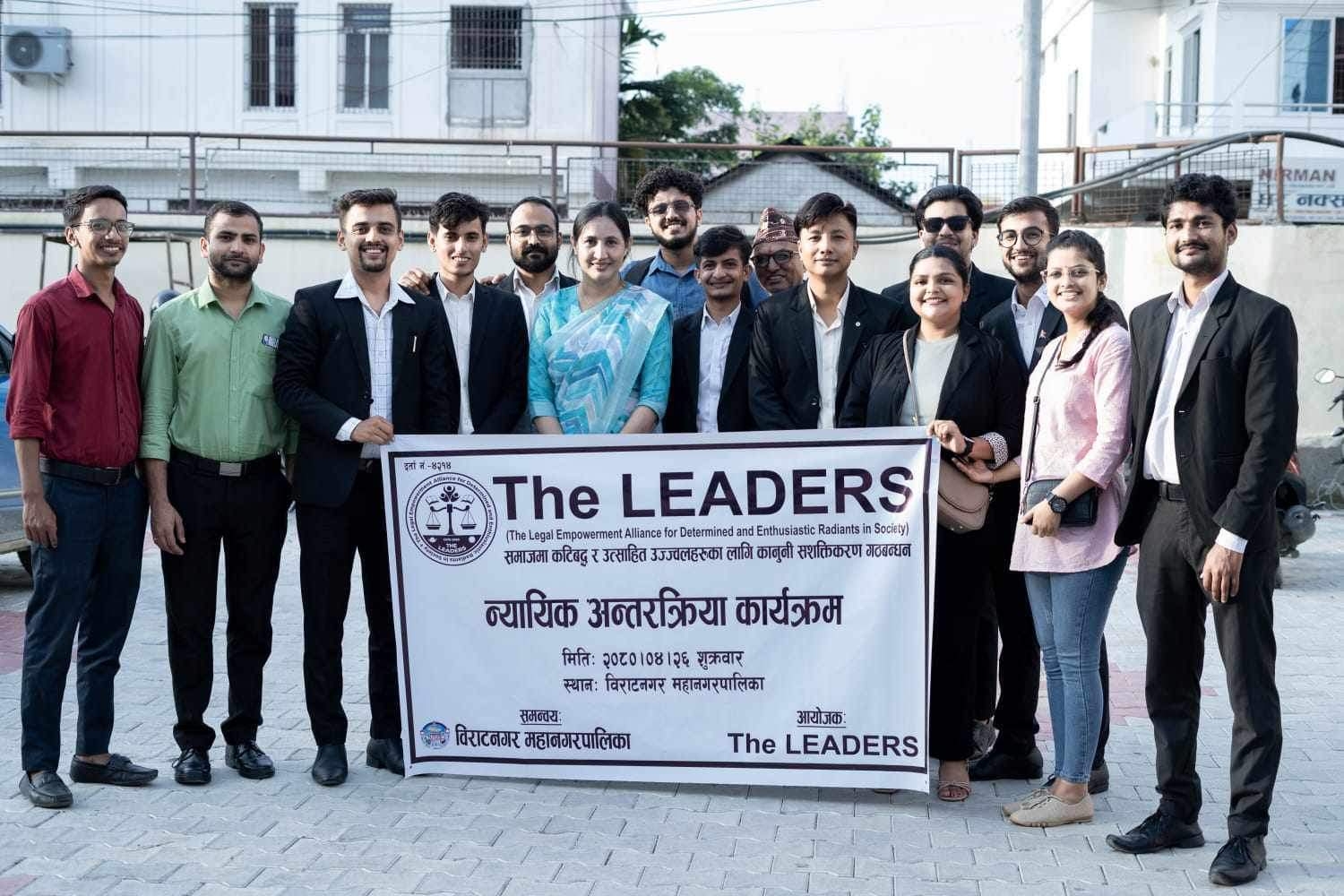 कार्यक्रम विराटनगर महानगरपालिकाको उपमेयर तथा न्यायिक समिति संयोजक शिल्पा निराला कार्की , न्यायिक समिति सदस्यहरू तिर्थेन्द्र न्यौपाने, रूपा देउजा , महानगरपालिकाको कानुनी सल्लाहकार अधिवक्ता ज्ञानेन्द्र थापा, डिल्ली घिमिरे र परमेश्वर नेपालको सहभागितामा सम्पन्न भएको छ। The LEADERS को टिमसहित ब्राईट भिजन ल कलेजमा अध्ययन गरिरहेका समेत गरेर करिव ४० जना कानुनका विद्यार्थी र अधिवक्ता द्वय साहस आचार्य र अन्ताज हुसेन समेतको कार्यक्रममा सहभागीता थियो। अन्तरक्रिया कार्यक्रममा न्यायिक समितिसँग सम्बन्धित विभिन्न एजेण्डामा छलफल भएको थियो। स्थापना भएपछिको पहिलो कार्यक्रम रहेको जानकारी दिँदै संस्थाका सचिव कुशल कोइरालाले आगामी दिनमा न्यायिक क्षेत्रमा विभिन्न प्रभावकारी कार्यक्रम गर्ने र समाजमा पनि गएर कानुनी शिक्षा प्रदान गर्ने योजना समेत रहेको जानकारी गराउनु भयो।