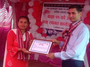 आफुहरुले सधैं विद्यार्थीको हकहितका लागि विभिन्न कार्यक्रम आयोजना गरेको र विद्यार्थीहरुको साथ र सहयोगले गर्दा नै आफ्नो विद्यालय स्थापनाकालदेखी नै उत्साहजनक रहेको उदघोष गर्दै सबै अभिभावक तथा विद्यार्थीलाई साथ र सहयोगको लागि धन्यवाद दिनुभयो ।
