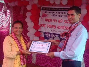 यसैबीच सूर्य किरण एकेडेमी इनरुवा ५ बलाहाले नवआगन्तुक विधार्थीलाई स्वागत कार्यक्रममा इनरुवा नगरपालिकाका प्रमुख केदार भण्डारी सहित ६ जना जनप्रतिनिधिलाई सम्मान गरेको छ । एकेडेमीका प्रिन्सिपल मनोज कुमार यादवले नगर प्रमुख भण्डारी सहित इनरुवा नगरपालिका ५ का वडा अध्यक्ष अनिलकुमार पोखरेल, वडा सदस्य यामकुमार श्रेष्ठ, शारदा भट्टराई, सृजना विश्वकर्मा, दुर्गा प्रसाद दाहाल, इनरुवा नगरपालिका ९ का वडा सदस्य मनोज कुमार यादवलाई सम्मान पत्र र खादाले सम्मान गरेको थियो । कार्यक्रम संचालन विद्यालयका इन्द्रविनोद भण्ट्राईले गर्नुभएको थियो ।
