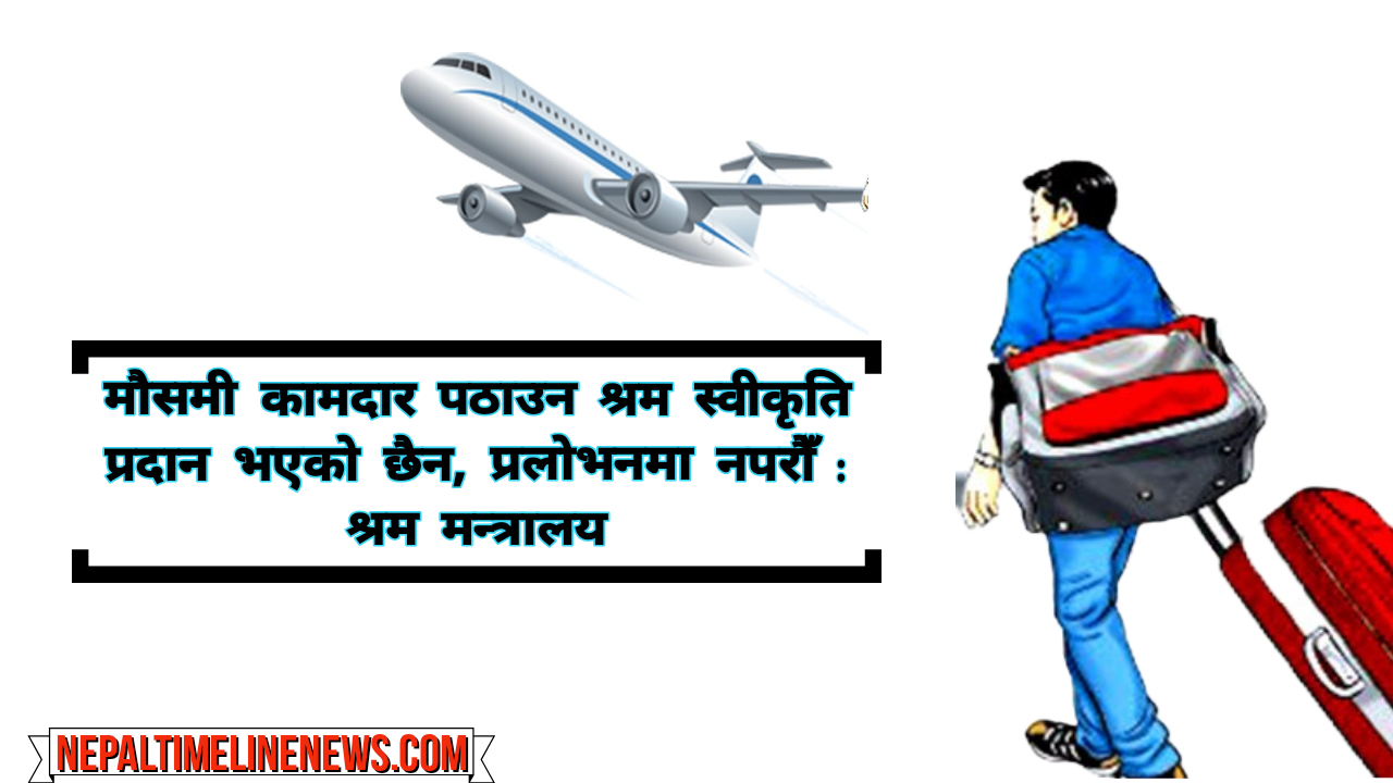 काठमाण्डौ । श्रम रोजगार तथा सामाजिक सुरक्षा मन्त्रालयले मौसमी कामदारको रूपमा वैदेशिक रोजगारीमा श्रमिक पठाउन श्रम स्वीकृति नदिइएको बताएको छ ।