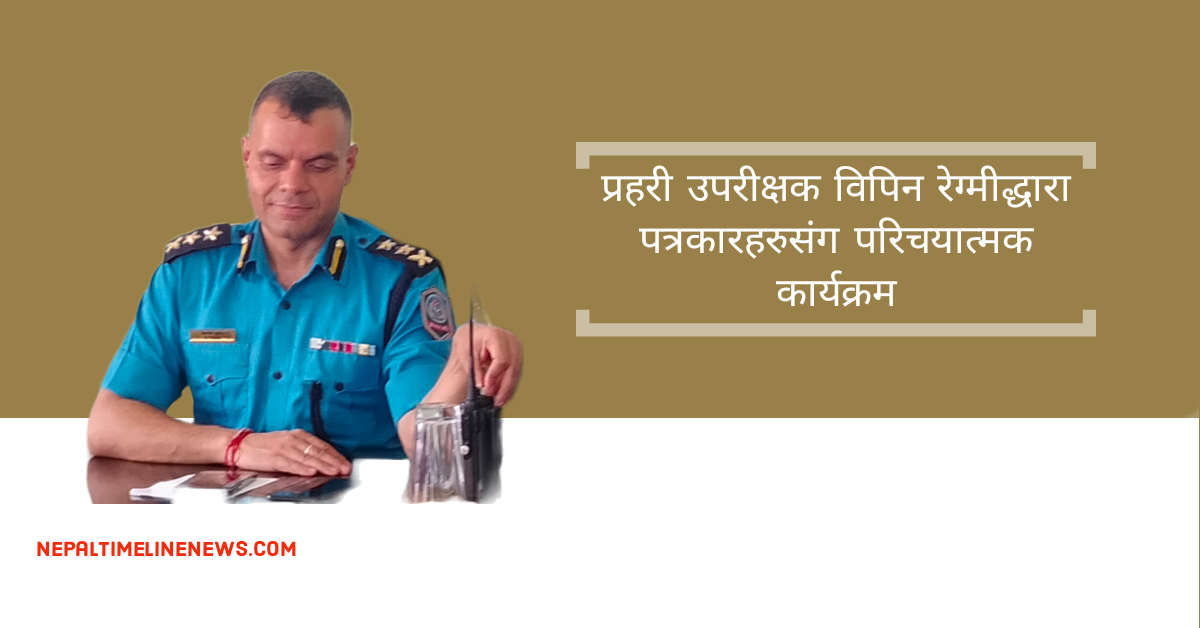 प्रहरी उपरीक्षक विपिन रेग्मीद्धारा गरिएको पत्रकारहरुसंग परिचयात्मक कार्यक्रममा पत्रकार संतोश यादव, सन्तोश काफ्ले, जयकृष्ण यादव, अर्जुन सुवेदी, अजितकुमार झा, मनोज भुजेल ,रविन्द्र कुमार यादव सहितले सुझाव तथा अवस्थाको बारेमा बोल्नुभएको थियो ।