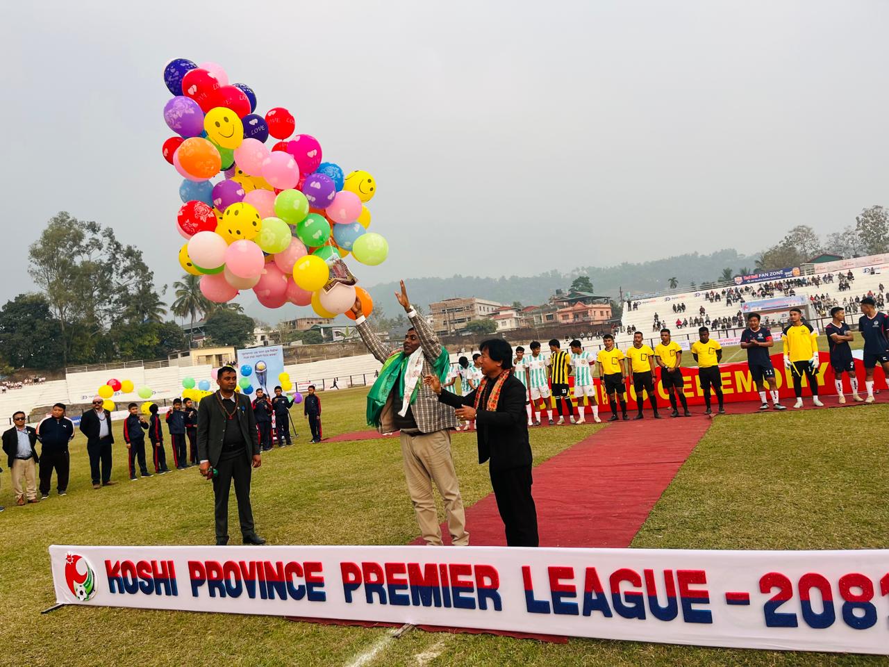 विराटनगर । कोशी प्रदेश सरकारको पर्यटन, वन तथा वातावरण मन्त्री सदानन्द मण्डलको प्रमुख आतिथ्यमा प्रदेश स्तरीय पुरुष फुटबल प्रतियोगिता २०८१ को भव्य उद्घाटन गरिएको छ।
