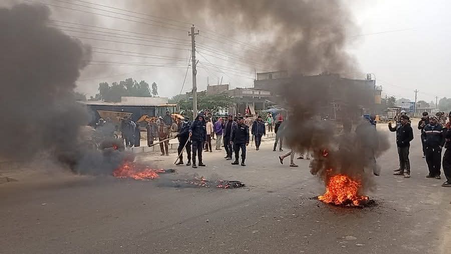 Members of the Hindu community in Siraha took to the streets to protest against the ongoing violence against religious minorities in Bangladesh. During the demonstration, protesters burned tires in front of the Ganapati Petrol Pump at Choharwa along the East–West Highway, completely blocking the highway for some time.